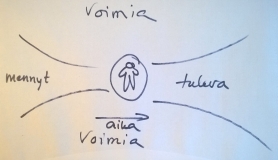 12.01.2018 On voimia, ja voimia Mystikko omissaan pohdiskelee voimien suuruuksia ja moninaisuuksia mitä kaikkea on, ja miten vaikuttaa ja mitä ajallisissa voi käyttöön ottaa. Ja näin hän tuumailee... -On voimia ja on voimia on ajallisessa vaikuttavia ja on ajattomassa vaikuttavia ja on voimia ajallisen takaisessa ja ajattoman takaisessa iankaikkisessa ulottumassa kaikkinaisuudessa vaikuttavia. Ja yhdellä voimalla voi vaikuttaa yhtäällä toisella voimalla toisaalla ylemmällä voimalla ylemmissä ylemmillä ylimmissä - ja viel senkin takaisissa. Ei ole vain yhtä voimaa jolla vaikuttaa kaikkeudessa vaan, kaikilla voimilla rajansa kaikkeuden rakenteessa. Ja kullakin voimalla voi vaikuttaa omissa tasoissa. Vaan, mikä kaikki on ihmiselle tarpeellista ajallisessa ja ajallisen ja ajattoman rajalla - se ei ole kaukana eikä kaukaisen ulottumassa. Tasot ovat monenlaiset tehot ovat monenlaiset vaikutukset vaihtelevaiset. Ja minne kauas ois ihmisen osa minne asti viisaus, ymmärrys minne asti sanojen vaikutus minne tahto. Ja minne tahto oikea ettei vain ois kokonaisuutta sotkeva joiss' ois valta vaikuttava. Ihmisellä on ulottuma ulottuman takana lähin tässä, nyt näkyvässä on ulottuma menneessä ja tulevassa ulottuma unelmassa mut' nuo kaikki kuin ajallisessa ja ajallisen ajattomassa ihmisen ajatusmaailmassa. Mut' mitä kaikkea onkaan ihmisen ajatusmaailman takana ajatuksen tavoittamattomassa, kuin uskossa ett' jotain suurempaa viel on olemassa tään ihmisymmärryksen takana näkymättömässä ylemmässä. Mutta, ei se estä sitä ettei se voima ois kuitenkin ihmisen käytettävissä vaik ei hän ymmärrä sen ylemmyyttä. Voi rukoilla, anoa toivoa, uskoa uskoa uskomattomia vaik' kaikella valtansa ja paikkansa ja kaikkea voi anoa, toivoa uskoa - ja manata. Pitää aina olla myös tarkkana ettei ano vahinkoa itselle, toiselle ihmiselolle kaikkeudelle. Ihminen kun on tässä rajalla menneen kaukaisen ja tulevan ulottuman kuin matkalla jostakin kaukaa jonnekin kauas siin' kuin hetken välissä vaikuttamassa osaltansa rakentamassa kuin siltana menneen ja tulevan jo toteutuneen, ja unelman. (...ja Mystikko piirteli karttaa) Aikamoinen paikka jos osaa oikein katsoa - maailmoitten rajalla alati muuttuvassa. Ja voimat kulkevat vaikuttavat yllä ja alla ja koko ajan elon kohdalla ja ihminen kaiken keskellä on osa kaikkeutta rajallisena, tai kuin rajattomana vangittuna kuin kuplassa menneitten mahtavassa ja tulevien unelmassa, kuin utopiassa ja samalla kuin vapaana lähellä ja kuin jossain kaukana yhdessä hetkessä tulossa ja toisessa jo taas menossa jostakin, jonnekin; ajattomin, ajallisin ja taas ajattomin unelmin. Ja nyt ... miksei tälle ihmeelliselle ihmiselle ois mahdollista ylettyä myös voimille ylemmille jonka osanen hän kuitenkin on ja jonka kuin keskellä on hällä nyt hetken paikkansa matkalla jostakin jonnekin nyt ajallisen vajavaisin ajatuksin - vaikke se tarkoitakaan sitä etteikö yhteyksiä ois vaikka minne kaukaisien ylemmille. Eikä mitkään voimat ole hänestä kaukana hänhän on kaiken seassa keskellä nyt hetken tässä hetki sitten jossain menneessä ja kohta jo tulevassa osana sen ulottumassa. Ja nyt, siis vasta ... on voimia, ja voimia on ajallisia ja ajallisen ja ajattoman rajallisia on ylempiä ja ylemmän ylempiä ja ylimpiä ja viel niidenkin takaisia ja ihminen voi uskoa, toivoa pyytää ja anoa nähdä unia, uneksua uneksia tulevia ja pyytää, toivoa, anoa ajallisen pienen hetkensä apuja sen kaiken keskellä, miss' hän kuitenkin on osallinen hetkellisen kohtalon jonka tarkoitusta hän ei edes ajallisessa ymmärrä mut' hän on kuitenkin kaiken näkevä koska hän on iankaikkinen elämä ja häntä ympäröi aina iankaikkinen voima, väkevä. -Nii'i, huokaa Kapteeni hytissään kaulaliina päänsä ympärillä ettei päätä palelis vaikka kaikki suuruus on kaiken aikaa hällä ympärillä. -Hetkellinen, tää ajallinen elämä, hän vielä yön hiljaisuudessaan toteaa ja toivoo, että sais viel ees hetken nukkua. Ja Kapteeni peittonsa alla viel' huokas: -Oi, anna mun tuntea, ees hetkisen niitä kaikkeuden suuria voimia hoitaa tätä ajallista riutuvaa kehoa parantaa sen silmiä, sydäntä, ihoa ja koko ajallista olemusta ja ymmärtää tätä kaikkinaisuuden kokonaisuutta. Ees hetkisen... minä anon ja pyydän ... ees hetkisen vaikka, miksei ... vaikka kokoaikaisen elon hetkisen. #