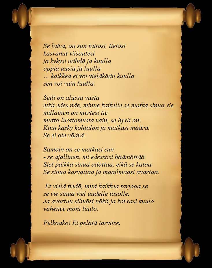 tuonne uudelle selälle uusiin seikkailuihin", huokailee Kipparikin.