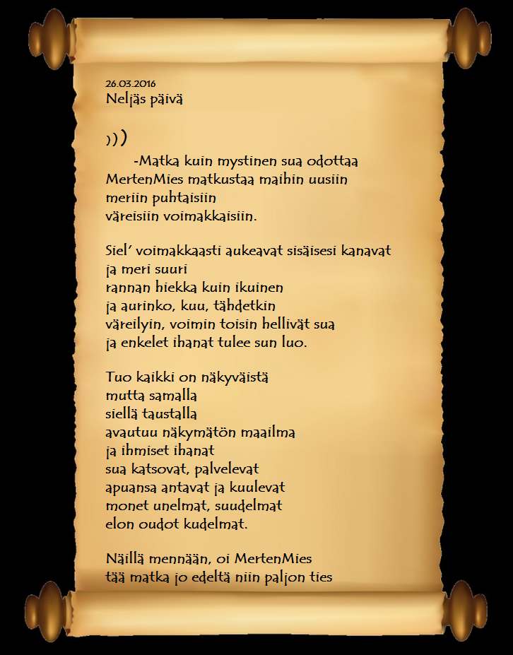 tapailee taas Tietäjä hiljaisesti hyräillen.